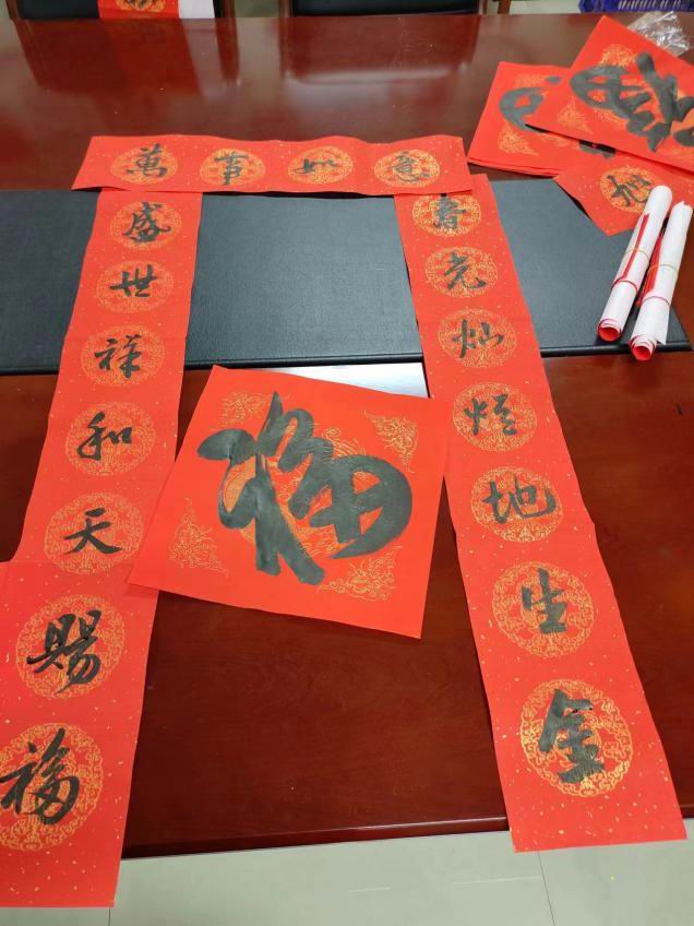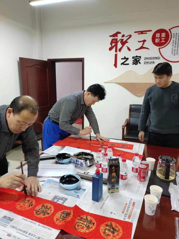 在春節(jié)來臨之際實(shí)業(yè)公司工會邀請萬基書法愛好者書寫春聯(lián)400余副,將喜迎春節(jié)的年味和新春祝福送給各位職工。